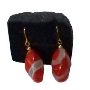 These earrings are very well matched and have the unique red and white colors with distinct quartz pattern matrix!
