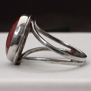 Natural Red Rhodonite Ring, Natural Rounded Rhodonite Sterling Silver Size 7