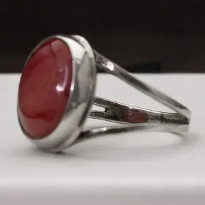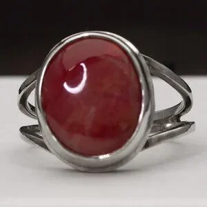 Natural Red Rhodonite Ring, Natural Rounded Rhodonite Sterling Silver Size 7