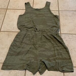 Get ready for summer with this stylish and comfortable romper from Natural Reflections. Featuring a trendy olive green camouflage pattern, this one-piece outfit is perfect for any casual occasion. The drawstring waist allows for a customizable and flattering fit. It is a size XL and is made of a soft, breathable fabric. Excellent used condition.