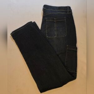 slouchy women's cargo jeans with 2 cargo pockets, 2 side pockets and 2 back pockets.