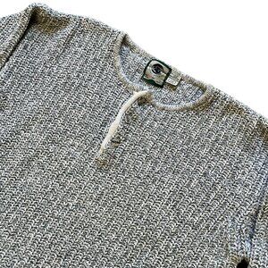 Vintage Northern Resources 100% cotton shaker knit pullover sweater has 3-button henley neckline. Sage green/white heather colorway. Machine washable. Tag size "Large" -oversized fit- see below for garment measurements. Pre-owned condition: vintage sweater has some pilling from normal wash/wear. The pictures show the actual shirt that you will receive.