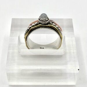 Natural Round Moonstone Three Tone Spinner Ring 925 Sterling Silver
