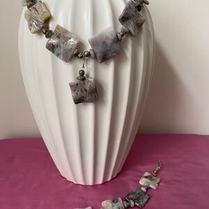 Custom hand crafted, natural stone, beautiful grey set - necklace and bracelet. Pre-loved.