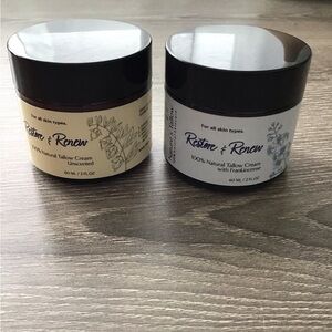 Experience the nourishing benefits of 's Natural Tallow Cream. This set includes an unscented cream and a frankincense-infused cream, perfect for all skin types. The cream and black jars add a touch of elegance to your skincare routine.