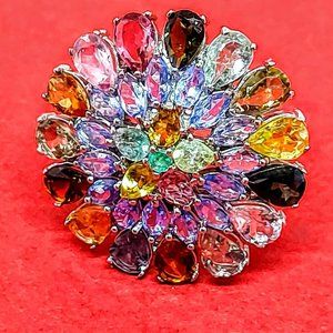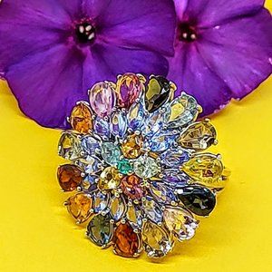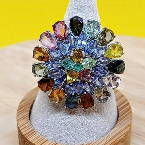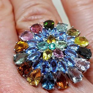 Natural Tourmaline, Emerald & Tanzanite 925 Sterling Silver Ring Size 7.5