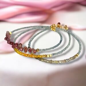Natural Tourmaline Sapphire Convertible Necklace Wrap Bracelet Solid 14k Gold