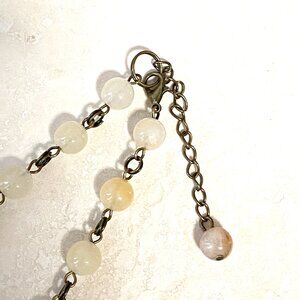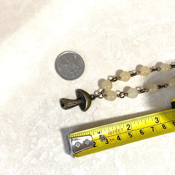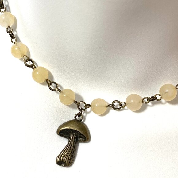 Natural Yellow Aventurine Necklace, Bronze Slim Mushroom+Genuine Gemstone Choker