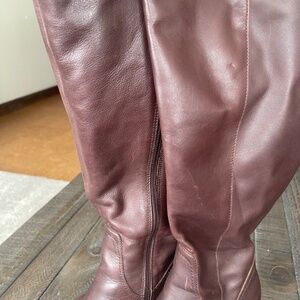 These leather dark brown wide calf boots are beautiful. They were worn once and then I lost a bunch of weight so they no longer fit around the calf. They are wide calf so if you have trouble finding boots that fit your calf, these are the ones.