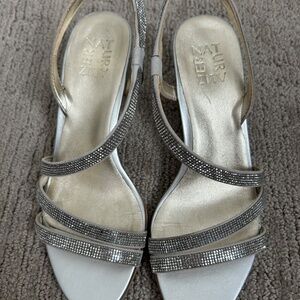 All-day comfortable women's crystal embellished dress heeled sandals with slingback strap