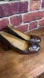 Perfect party shoes for all your Christmas and new year events. They are super comfortable and stylish. It’s a dark grey metallic colour. The heel is a lower block style. Beautiful buckle on the front round toe giving them an extra wow feature. So great with a dress, a suit or even jeans and a top. Lots of styling options.