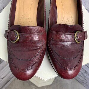 Naturalizer N5 Comfort Burgundy Leather Mid Block Heel Loafer Pump