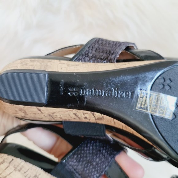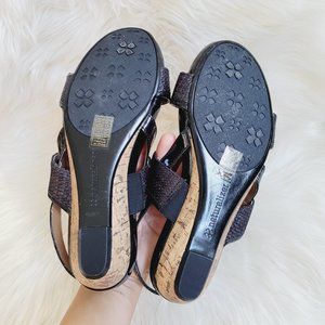 Naturalizer N5 Comfort Frazzle Cork Wedge Sandals Minimal Black Textured 6.5 NEW