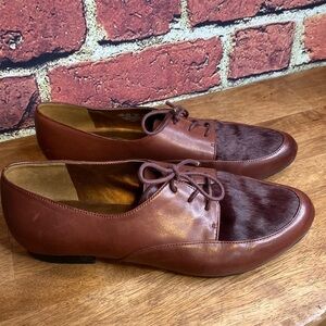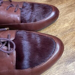 Naturalizer N5 Oxford Leather Lace Up Loafers with Fur Toe Burgundy Size 7.5