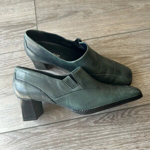 Naturalizer Sharon Green Soft Smooth Leather Slip On Loafer Heels