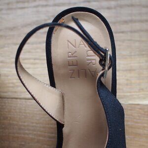 * in very good condition (some wear on the inside lining on footbed and within straps); the satin is in excellent condition