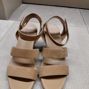 Naturalizer Wedge Sandals (Color: Cookie Dough Faux Leather) [Size: 8] Very comfortable lightweight with straps and 2 3/4 inch wedge heel. Amazing and so easy on your feet!
