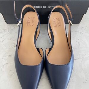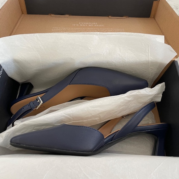 New in Box. Lush cushioned comfort footbed. Modern heel and styling. Most comfortable pumps EVER! Sold out in this beautiful Midnight Navy. Be sure to check my other listings too!