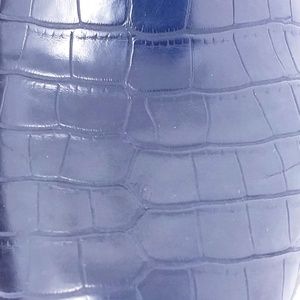 Black croco upper, brown trim, black wedge
