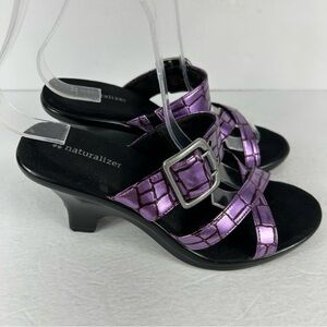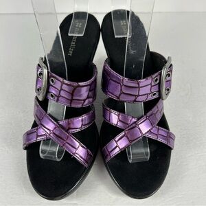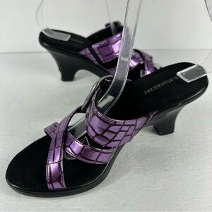 Elegant metallic purple heels with a stylish buckle design. Perfect for adding a touch of glamour.