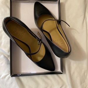New in Box black leather Mary Jane point toe heels. Size 6 wide . “Elora” good for flight attendants