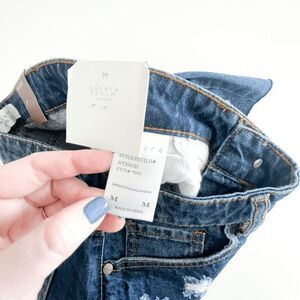 Nature Denim Women's Jean Shorts Distressed High Rise Button Fly Blue Wash M