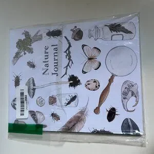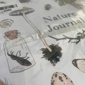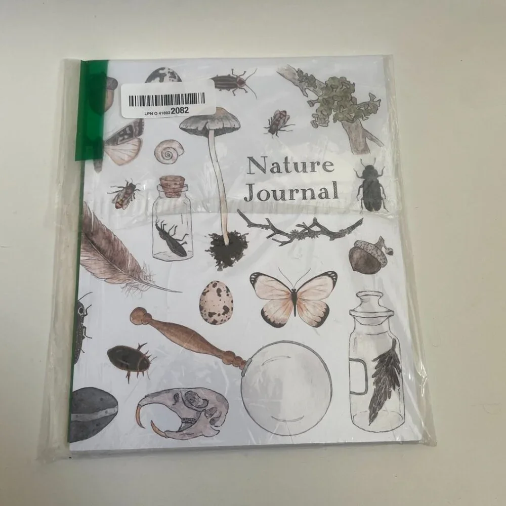 Beautifully designed Nature Journal featuring vintage-style illustrations of butterflies, mushrooms, feathers, insects, and plants