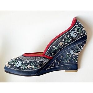 Naughty Monkey embroidered wedges size 8