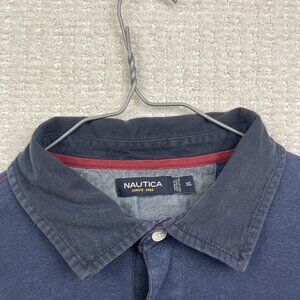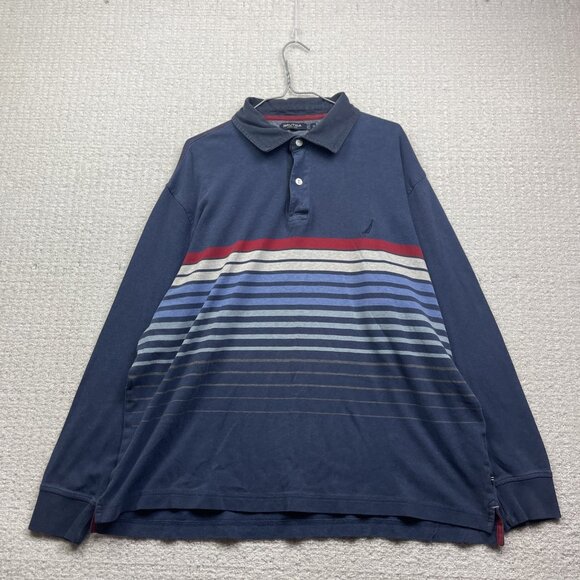 Nautica Blue Sail XL Mens Striped Long Sleeve Rugby Polo Shirt Color Block