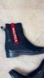 Nautica rain boots with a glossy navy finish. Red accents add a bold touch. Perfect for wet weather. Easy to put on as there is an elasticized cuff long and wide enough to help slip the boot on and off. Pre-loved see pics.