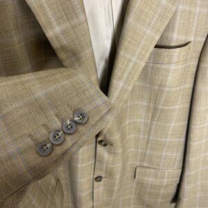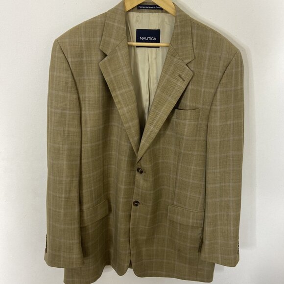 Nautica Men 44L Wool Check Blazer Sports Coat Yellow Green Beige