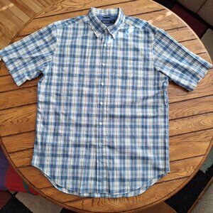Nautica Men’s Cotton Short Sleeve Button Down Blue and Yellow Plaid Shirt Size L