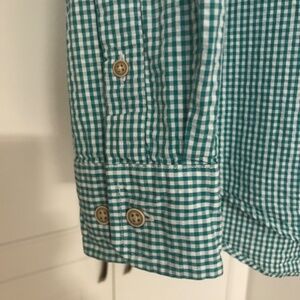 Nautica Men’s Gingham 100% Cotton US S Green & White Long Sleeve Button down