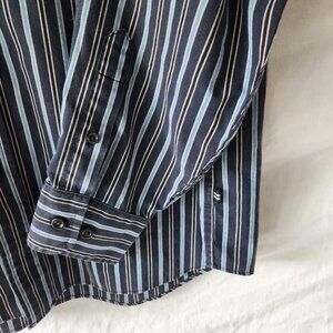 Nautica Men’s Long-Sleeve Shirt Size L Navy Stripe Classic Fit Wrinkle Resistant