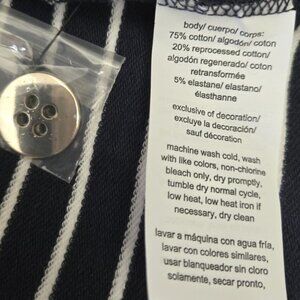 Lightweight knit blazer, two buttons navy white striped. Cotton with a bit of stretch elastane Versatile piece, great for a casual look with jeans and t shirts or over a dress or tailored trousers for a more polished look. Brand new purchased for $99.50 USD (CAD 139).