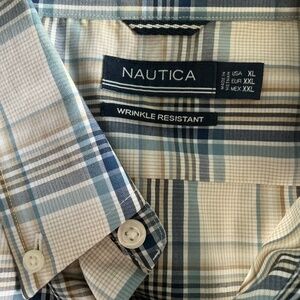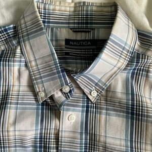 Men’s XL, front button down, button down collar, left chest pocket, excellent condition. Blue and brown.