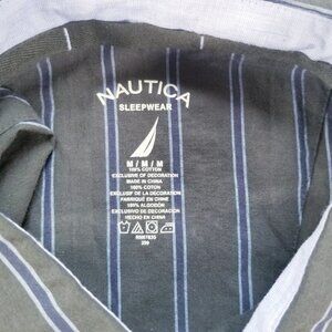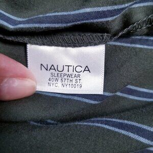 Nautica Sleepwear Shirt Men's Med Long Sleeve Button Up Green with Blue Stripes