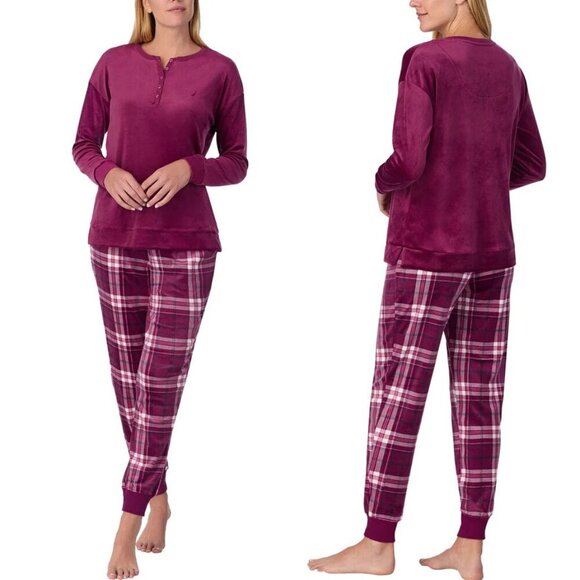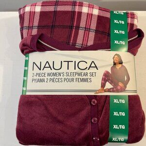 Nautica Women's Dark Pink Henley Silky Fleece Pyjama Set - NWT.