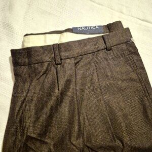 Nautica men's size 42 x 30 brown Brantley lined wool cuffed pants, pleated front, NWT