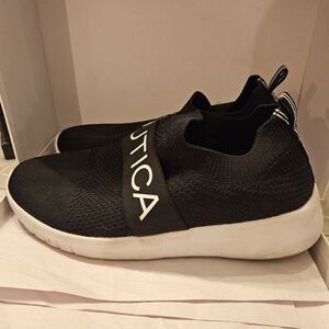 Nautica womens running shoe slip on black white sz 9.5 Pre-owned