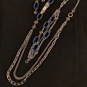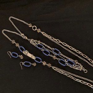 Necklace Set - Nautical Blue Light Gold Tone Double Chain Necklace, Earrings and Bracelet Set.