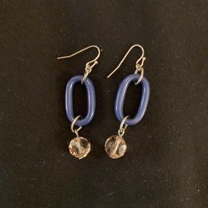 Pierced earrings also include nautical navy blue ovals, and a smokey gold crystal.