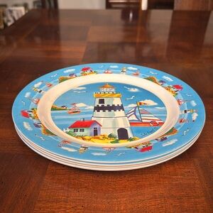 Nautical Lighthouse Melamine Set of 4 Dishes Boat Sea Julio Napali
