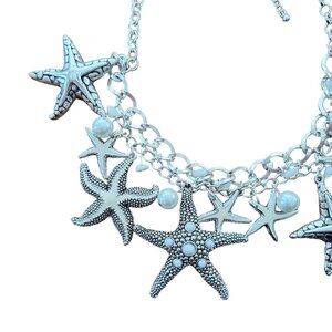 Nautical Necklace Starfish and Faux Pearls Silver Tone Mermaidcore