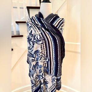 Lovely, soft large scarf with a blue shell and starfish print. The perfect way to stay warm on late summer nights by the water.