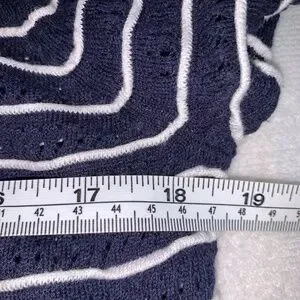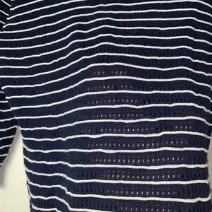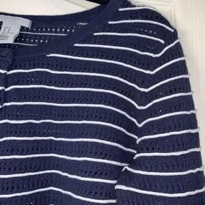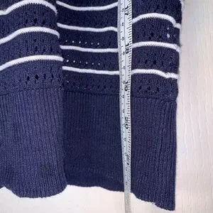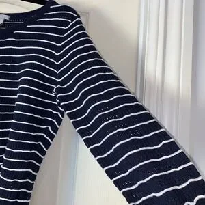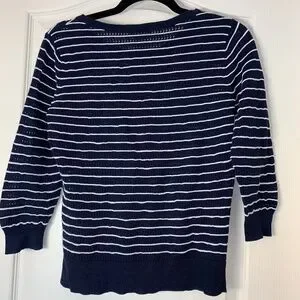Nautical Striped Knit Sweater Navy White 3/4 Sleeve Size M – Lightweight Coastal