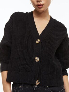 Maille légère avec petits détails ajourés subtils. Manches 3/4 et boutons à l’avant. Longueur légèrement plus courte, parfaite avec pantalon taille haute ou jupe midi.