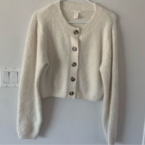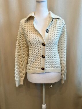 Lightweight and breathable with subtle open-knit detailing throughout. Features 3/4 sleeves, button front closure, and a slightly shorter length that pairs beautifully with high-waisted jeans, white trousers, or a midi skirt.