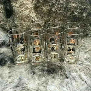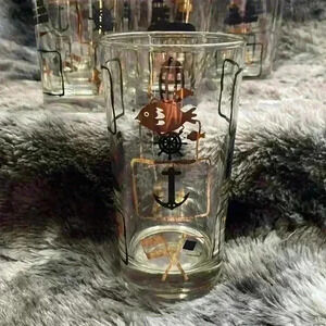 Nautical Themed Tall Drinking Glasses by Dominion Glass of Canada, 10 Oz Set of 8