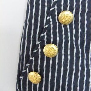The false pockets allow the fabric to lie flat and follow the hip curve. Beautiful gold buttons highlight the hip point.
